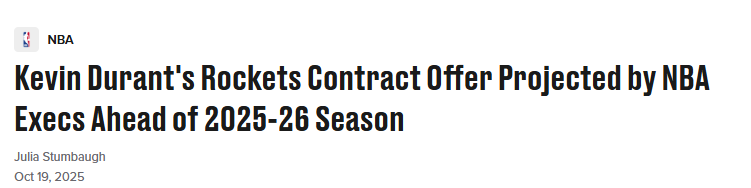 杜兰特至少降薪4000万美元?高管建议火箭最多2年8000万与他续约